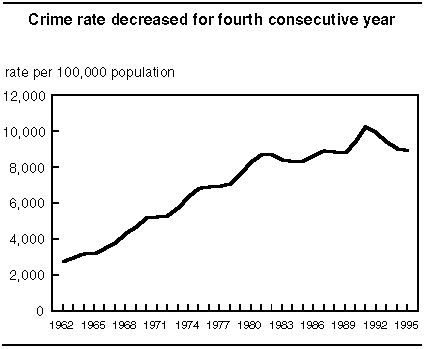 Most categories of violent crime dropped in 1995. The rate of minor assaults, which accounted for 6 in 10 of the almost 300,000 violent crimes, declined by 3%. Over the last two years, sexual assaults have dropped 21%, a trend that was evident in all provinces.